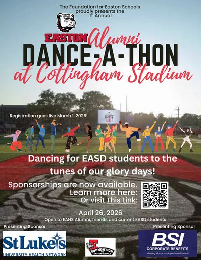 Attention all Red Rovers! In Spring of 2026, The Foundation for Easton Schools will be hosting our 1st Annual DANCE-A-THON at Cottingham Stadium. This event will bring alumni communities together while promoting the work of FFES as well as other nonprofits that serve the communities of EASD. To receive updates on this event and register as an EAHS alumni, click the link below and share with other Red Rovers!